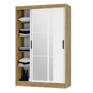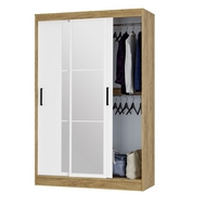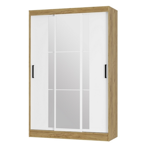 Особенности: Трёхдверный шкаф-купе Тайм ШКК-03 представляет собой вместительный гардероб, который сочетает функциональность и стильный дизайн. Сочетание цветов дуб крафт и белого придает шкафу элегантный и современный вид. Шкаф-купе оснащен тремя раздвижными створками, центральная створка полностью декорирована зеркалом с еврокромкой, которое визуально расширяет пространство. Все три створки подвижны, боковые снабжены удобными ручками. Шкаф-купе Тайм состоит с одной стороны из пяти полок для хранения вещей и постельного белья, с другой стороны вместительного отсека с двумя горизонтальными хромированными штангами для одежды на вешалках. Шкаф выполнен из высококачественного ЛДСП, что обеспечивает его долговечность и надежность. Максимальная нагрузка на полку - 10 кг. Поставляется в разобранном виде.