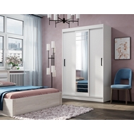 Особенности: Шкаф-купе Тео ШКК-02 в белом цвете оборудован удобными дверьми с ручками, центральная створка выполнена в виде зеркала с еврокромкой. Внутри шкафа предусмотрены полки для одежды, аксессуаров и других предметов. Дополнительно в шкафу расположены две хромированные штанги для одежды. Тип открывания дверей: Раздвижные в стороны. Максимальная нагрузка на полку – 10 кг.