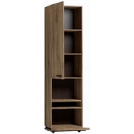 Технические характеристики: Сборка лево/правосторонняя. Шкаф оснащён отделением с распашной дверью, двумя открытыми секциями и отделением с горизонтальной дверцей (открывается на себя и вниз). Внутри отделения с распашной дверью расположены 3 полки. Полки регулируются по высоте. Нагрузка на 1 полку до 15 кг. Динамику коллекции задаёт чередование сборных рельефных и гладких фасадов. Эффектный цвет с текстурой натуральной древесины. Ручки выполнены из массива дерева. Регулируемые опоры позволят компенсировать незначительные неровности пола. Шкаф крепится к стене за подвесы. Поставляется в разобранном виде.