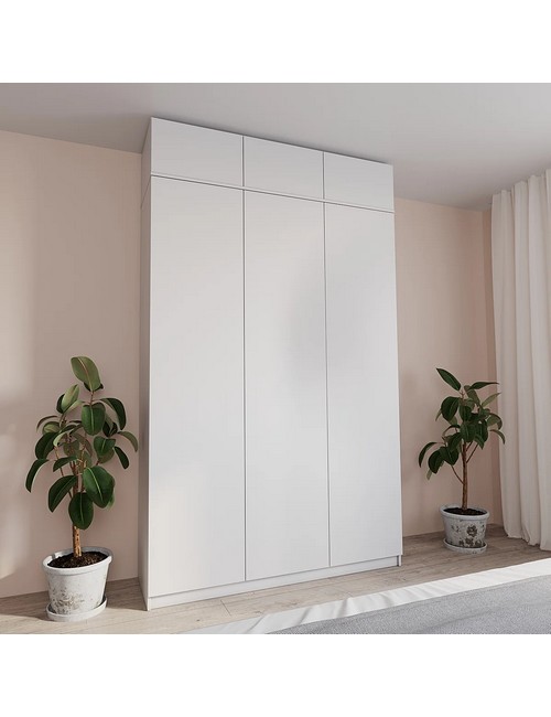 Технические характеристики: Шкаф Мика 1500 с антресолью 1500 (белый) - идеально впишется в гостиную, спальню или прихожую. Платяной шкаф комплектуется металлической штангой для вешалок, полками для хранения и выдвижными ящиками. Дверцы шкафа без ручек, распашные. Система открывания дверей нажатием (push-to-open). Направляющие ящика шариковые, полного выдвижения. В комплект входит распашной шкаф и антресоль.