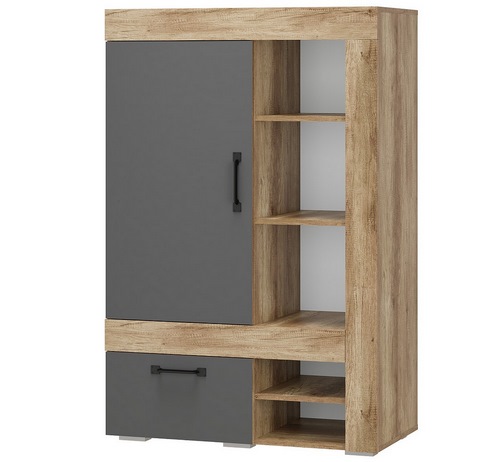 Дополнительно: Шкаф Прима ШК-18 в актуальном декоре дуб каньон/графит удачно впишется в современную обстановку Вашей квартиры и позволит организовать грамотное хранение вещей в гостиной и спальне. Приятный древесный оттенок корпуса гармонично дополнен матовым графитом, в котором исполнены фасады. Многофункциональный шкаф ШК-17 отличается интересным дизайном и разноплановым наполнением. Сборка на обе стороны. Универсальная сборка. Стильная лицевая фурнитура. Откидная створка внизу. Максимальная нагрузка на полку из ЛДСП - 10 кг.