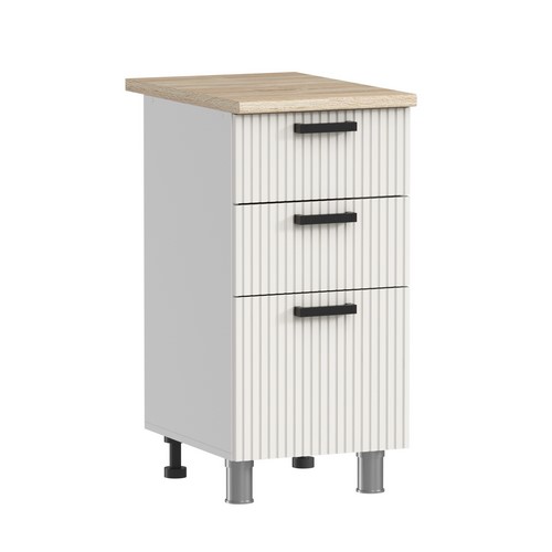 Особенности: Столешница не входит в стоимость и приобретается отдельно. Цоколь высота 100 мм, платсик, приобретается отдельно. Фасады с пленкой ПВХ производства Корея. Фасады устойчивы к выцветанию и имеют однородный оттенок. Лицевые опоры модельные регулируемые 100-120 мм. Задние опоры технические регулируемые 100-120 мм. Шариковые направляющие усиленные и выдерживают нагрузки до 50 кг.