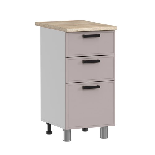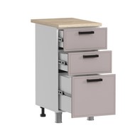 Особенности: Столешница не входит в стоимость и приобретается отдельно. Цоколь высота 100 мм, платсик, приобретается отдельно. Фасады с пленкой ПВХ производства Корея. Фасады устойчивы к выцветанию и имеют однородный оттенок. Лицевые опоры модельные регулируемые 100-120 мм. Задние опоры технические регулируемые 100-120 мм. Шариковые направляющие усиленные и выдерживают нагрузки до 50 кг.
