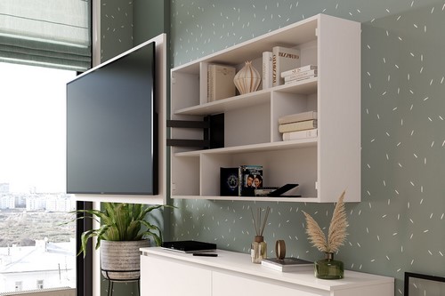 Дополнительно: Шкаф навесной под ТВ Эко ШКН-06 имеет множество полок внутри. Телевизор фиксируется на фасаде шкафа, который в свою очередь закрепляется на кронштейне. Шкаф выполнен в белом цвете с текстурой среза натурального дерева. Монтаж шкафа осуществляется на несущей стене. Размер места под телевизор - 1150х720 мм (крепится к передней панели). Максимальная нагрузка на шкаф - до 30 кг. Максимальная нагрузка на полку до 5 кг.