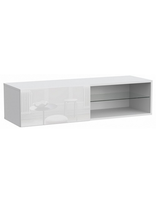 Ширина, см: 120,2. Высота, см: 30. Выступ, см: 40. Размер упаковки, (мм): 1440x65x435. Вес (кг): 16. Компоненты, входящие в комплект: 1 дверца, 1 полка подсветка. Стиль: модерн. Страна-производитель: Россия. Объем (м3): 0.06. Основной цвет: разноцветная. Материал фасада: МДФ. Материал корпуса: ЛДСП Е1. Тип поверхности корпуса: матовый. Место размещения: Стена. Помещение: Гостиная, Кабинет, Прихожая, Спальня. Гарантия (месяц): 24. Основное помещение: Гостиная. Цвет корпуса: белый. Цвет фасада: белый глянец.