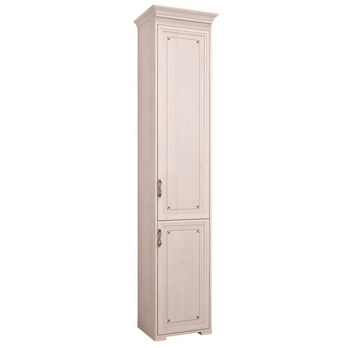 Особенности Шкафа-пенала Афродита: Высокий шкаф-пенал состоит из двух секций с глухими фасадами. Карниз не входит в комплект и приобретается отдельно. Декорированные фасады. Ажурные кованые ручки. Хорошая вместимость.