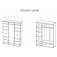 Ширина, см: 150. Высота, см: 205. Выступ, см: 55,6. Вес (кг): 147.1. Компоненты, входящие в комплект: 1 штанга для вешалок, 3 дверцы, 6 полок. Стиль: модерн. Страна-производитель: Россия. Объем (м3): 0.2. Основной цвет: разноцветная. Материал фасада: зеркало, МДФ. Материал корпуса: ЛДСП Е1. Тип поверхности корпуса: матовый. Место размещения: Пол. Помещение: Гостиная, Кабинет, Прихожая, Спальня. Гарантия (месяц): 24. Основное помещение: Гостиная. Цвет корпуса: белый. Цвет фасада: белый, зеркальный.