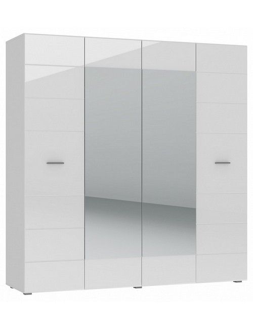 Ширина, см: 200. Высота, см: 205. Выступ, см: 55,6. Вес (кг): 192. Компоненты, входящие в комплект: 1 штанга для вешалок, 4 дверцы, 6 полок. Стиль: модерн. Страна-производитель: Россия. Объем (м3): 0.25. Основной цвет: разноцветная. Материал фасада: зеркало, МДФ. Материал корпуса: ЛДСП Е1. Тип поверхности корпуса: матовый. Место размещения: Пол. Помещение: Гостиная, Кабинет, Прихожая, Спальня. Гарантия (месяц): 24. Основное помещение: Гостиная. Цвет корпуса: белый. Цвет фасада: белый, зеркальный.
