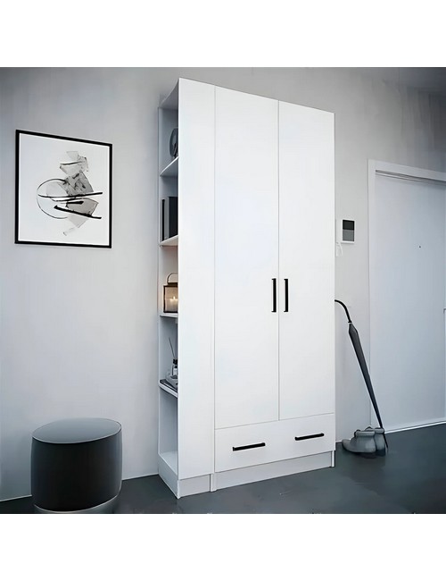 Технические характеристики: Шкаф с торцевым завершением Кевин (белый) - идеально впишется в малогабаритную гостиную, спальню или прихожую. В комплекте: двухстворчатый шкаф и торцевое завершение к шкафу. Торцевое завершение устанавливается с любой стороны шкафа по вашему пожеланию. Ящик шкафа на роликовых, металлических направляющих. Опоры и ручки шкафа пластиковые.