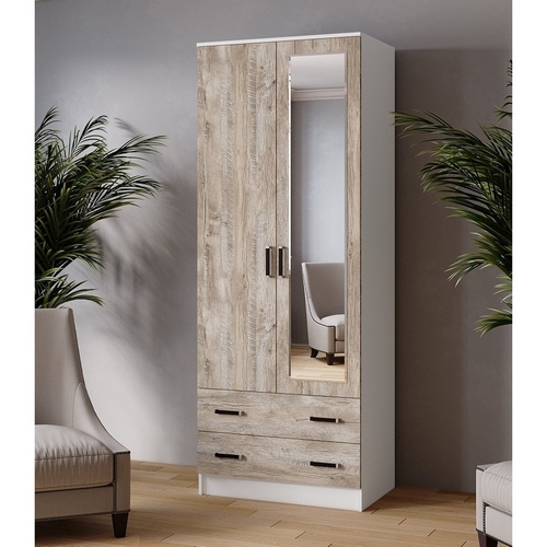 Особенности Шкафа с зеркалом Лагуна: Комбинированный шкаф Лагуна с зеркалом оснащен выдвижными ящиками, штангой для одежды и полкой для вещей в коробках. Петли без доводчика Boyard. Направляющие металлические, роликовые Boyard. Пластиковые ручки и опоры.