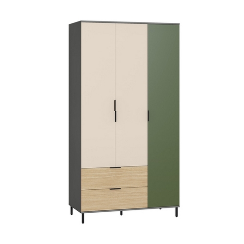 Шкаф трехдверный Марвэл 16.317.03 с ящиками (темно-серый, сатин, плэйн, зеленый)