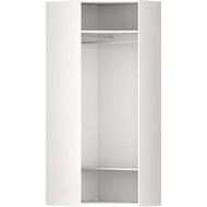 Технические характеристики: Внутри шкафа расположены две полки и две перекладины для вешалок. Дверные петли с доводчиками. Регулируемые опоры. Поставляется в разобранном виде.