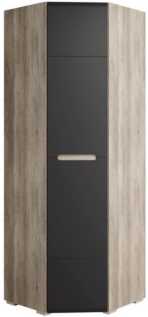 Технические характеристики: Шкаф из коллекции Наоми. Матовый фасад цвета графит. Ручки с декором под дубовый спил. Шкаф оснащен штангой для вешалок и полками для хранения.
