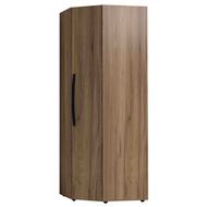 Технические характеристики: Угловой шкаф оснащен стационарной штангой для вешалок, полноценным стеллажом для белья, беспроводным светодиодным светильником, который включается при открывании двери. Ударопрочная кромка ПВХ 2 мм. Крепится на стену за подвесы. Регулируемые опоры, которые помогут компенсировать неровности пола. Полки можно регулировать по высоте. Выдерживает нагрузку до 25 кг.
