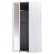 Особенности Шкафа углового с зеркалом Sherlock 10: Модель Sherlock 10 оснащена стационарной штангой. Шкаф вмещает комплект полок для хранения одежды в сложенном виде и белья. Комплектуется беспроводной светодиодной подсветкой, которая крепится на крышку шкафа на магнитах. Габариты шкафа позволяют компоновать его с другими модулями глубиной 59 см. Зеркальный фасад визуально облегчает пространство и добавляет функциональности. Крепление на стене за подвесы. Регулируемые по высоте полки.