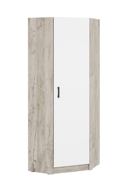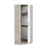 Особенности: Шкаф угловой Вега поможет рационально использовать пространство в комнате. Внутреннее наполнение со штангой и многочисленными полками. Штанга для вешалок в комплекте. Ручки пластиковые, накладные. Максимальная нагрузка на полку - 10 кг. Максимальная нагрузка на штангу - 10 кг.