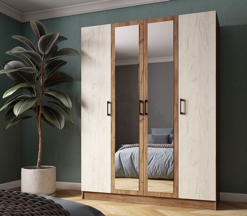 Особенности: Шкаф Вегас 160, дуб крафт табачный - четырехстворчатый шкаф для просторной прихожей или спальни. Зеркальные фасады. В комплекте стационарная штанга и комплект полок. Cтильная лицевая фурнитура.