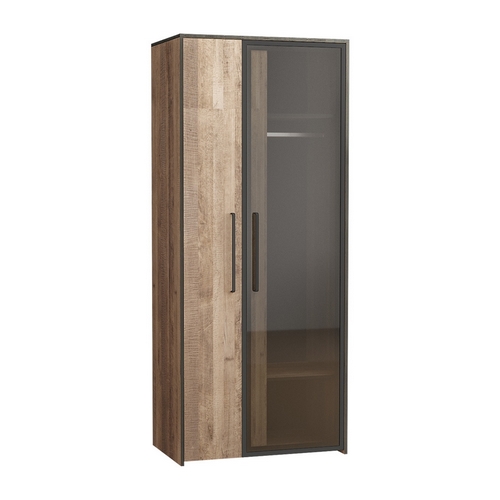 Особенности: Шкаф Трувор 13.204 оборудован полками, продольной штангой для вешалок и тонированным стеклом на фасаде в полный рост. Шкаф выполнен в цвете дуб гранж песочный с контрастной кромкой в цвете интра. Он изготовлен из ЛДСП, который отличается высокой износостойкостью и устойчивостью к механическим повреждениям. Петли оснащены доводчиками. Максимальная нагрузка на полку - 3 кг. Собирается на любую сторону. Можно компоновать с другими модулями из серии мебели Трувор. Реальный цвет товара может отличаться от цвета товара на фотографии. Поставляется в разобранном виде.