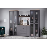 Особенности: Двустворчатый шкаф-витрина Остин 16.394.02 оборудован пятью полками. Комбинированный фасад из МДФ с прозрачными стеклянными вставками и металлическими ручками-кнопками контрастного черного цвета. Петли распашных фасадов с доводчиками. Регулируемые опоры позволяют легко компенсировать неровности пола. Максимальная нагрузка на полку - 8 кг. Можно компоновать с другими модулями из серии мебели Остин. Реальный цвет товара может отличаться от цвета товара на фотографии. Поставляется в разобранном виде.