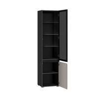 Особенности: Шкаф-витрина Сидней 13.201 оборудован удобными полками. Черные горизонтальные вставки и тонированное стекло витрины служат яркими акцентами интерьера. Шкаф изготовлен из качественных материалов, которые отличаются высокой износостойкостью и устойчивостью к механическим повреждениям. Петли распашных фасадов с доводчиком. Фасады без лицевой фурнитуры открываются за край либо нажатием (push-to-open). Шкаф оснащен водостойкими опорами. Максимальная нагрузка на полку - 8 кг. Можно компоновать с другими модулями из серии мебели Сидней. Реальный цвет товара может отличаться от цвета товара на фотографии. Поставляется в разобранном виде.