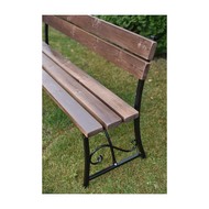 Технические Технические зарактеристики: Сборно-разборная конструкция. Скамейка декорирована коваными элементами. Металлический каркас покрыт специальным порошковым покрытием, которое делает металл устойчивым к коррозии и погодным условиям. Деревянные элементы покрыты морилкой (темный орех). Поставляется в разобранном виде.