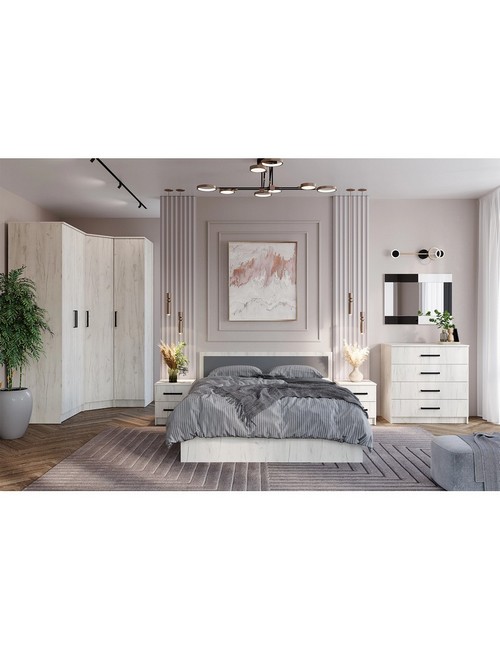 В комплекте: Комод Фиеста, Дуб крафт белый - ARN-BTS-00-00186611 - 1 шт. Кровать с реечным настилом Фиеста LIGHT 160х200, Дуб крафт белый - ARN-BTS-Н00115878 - 1 шт. Тумба прикроватная Фиеста, Дуб крафт белый - ARN-BTS-00-00186618 - 2 шт. Шкаф 2-х створчатый Фиеста, Дуб крафт белый - ARN-BTS-00-00186619 - 1 шт. Шкаф угловой Фиеста, Дуб крафт белый - ARN-BTS-00-00186622 - 1 шт. Пенал Фиеста, Дуб крафт белый - ARN-BTS-00-00186617 - 1 шт.