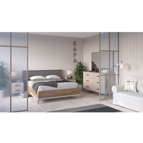 Комплектация: кровать Кара 9 (00-00142469), тумба прикроватная Кара 2 (00-00142463) - 2 шт., зеркало настенное Кара 5 (00-00142464), комод с ящиками Кара 4 (00-00142462).