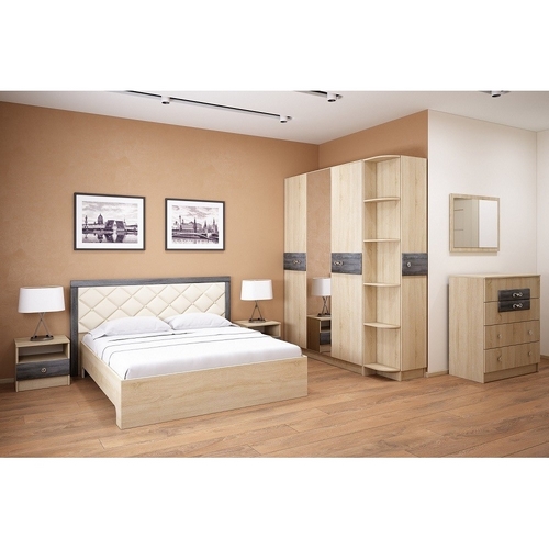 Размеры (см): Зеркало: ширина - 80, глубина - 2, высота - 55. Тумба прикроватная: ширина - 45, глубина - 38, высота - 46. Кровать: ширина - 178, глубина - 203, высота - 96. Шкаф 3-х дверный: ширина - 150, глубина - 55, высота - 220. Шкаф торцевой: ширина - 37, глубина - 53, высота - 220. Комод: ширина - 82, глубина - 44, высота - 81.