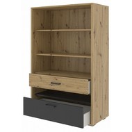 Ширина, см: 90. Высота, см: 138. Выступ, см: 42. Компоненты, входящие в комплект: 2 ящика, 3 полки. Стиль: модерн. Страна-производитель: Россия. Объем (м3): 0.077. Количество секций для хранения: 2. Основной цвет: разноцветная. Материал фасада: ЛДСП Е1. Материал корпуса: ЛДСП Е1. Тип поверхности корпуса: матовый. Дополнительное описание: В комплектацию входит светодиодная ленточная подсветка. Блок питания докупается отдельно. Место размещения: Пол. Помещение: Гостиная,Кабинет,Офис,Прихожая,Спальня. Гарантия (месяц): 24. Основное помещение: Офис. Цвет корпуса: дуб артизан. Цвет фасада: дуб артизан, черный.