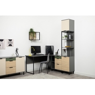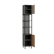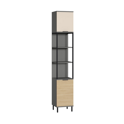 Особенности: Стеллаж Марвэл 16.426 выполнен в сочетании темно-серого корпуса и фасадов в оттенках сатин и плэйн. Он состоит из верхнего и нижнего отсека с полками с распашными дверцами и трех открытых полок по центру. Стеллаж изготовлен из ЛДСП, который отличается высокой износостойкостью и устойчивостью к механическим повреждениям. Опоры с регулировкой и ручки выполнены из металла в черном цвете. Универсальная сборка. Можно компоновать с другими модулями из серии мебели Марвел. Реальный цвет товара может отличаться от цвета товара на фотографии. Поставляется в разобранном виде.