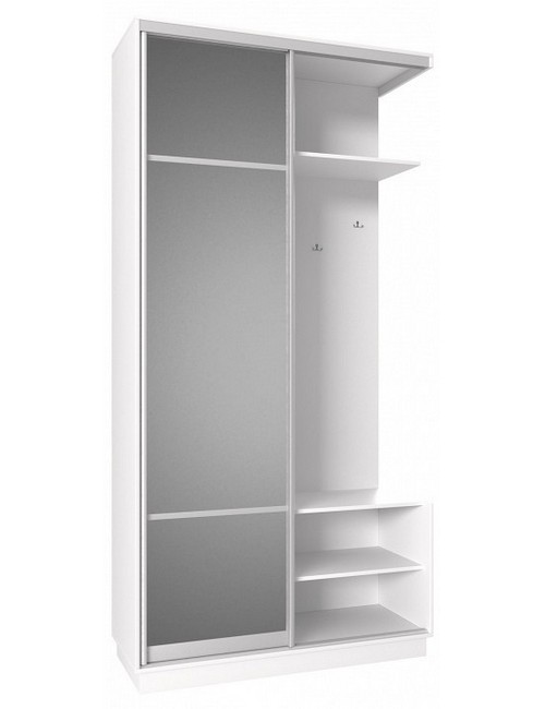 Ширина, см: 120. Высота, см: 240. Выступ, см: 45. Размер упаковки, (мм): 2330x50x580, 1210x100x460, 1200x50x50, 2100x40x600. Вес (кг): 116. Компоненты, входящие в комплект: 1 дверца, 1 штанга для вешалок, 3 крючка, 4 полки. Стиль: модерн. Страна-производитель: Россия. Объем (м3): 0.177. Основной цвет: разноцветная. Материал фасада: алюминий, зеркало. Материал корпуса: ЛДСП Е1. Тип поверхности корпуса: матовый. Дополнительное описание: Прихожая-купе экономит место в комнате и при этом очень вместительная. Благодаря вертикальной сборке, можно собирать даже в узкой прихожей. Для изготовления фасадов применяется ЛДСП 10 (мм), что облегчает конструкцию и продлевает срок службы фурнитуры. Зеркала усилены бронеплёнкой, которая защищает от осколков, если зеркало разбилось. На лицевых деталях применяем кромку 2 (мм), что придает изделию изящный внешний вид, продлевает срок службы и делают эксплуатацию безопасной. Горизонты крепятся к бокам эксцентриковыми стяжками, это сохраняет красивый внешний вид. Дополнительные параметры: нагрузка на штангу для вешалок - 22 кг, нишу под обувь не рекомендуется использовать как сидение. Место размещения: Пол. Помещение: Прихожая. Гарантия (месяц): 24. Основное помещение: Прихожая. Цвет корпуса: белый. Цвет фасада: серый.