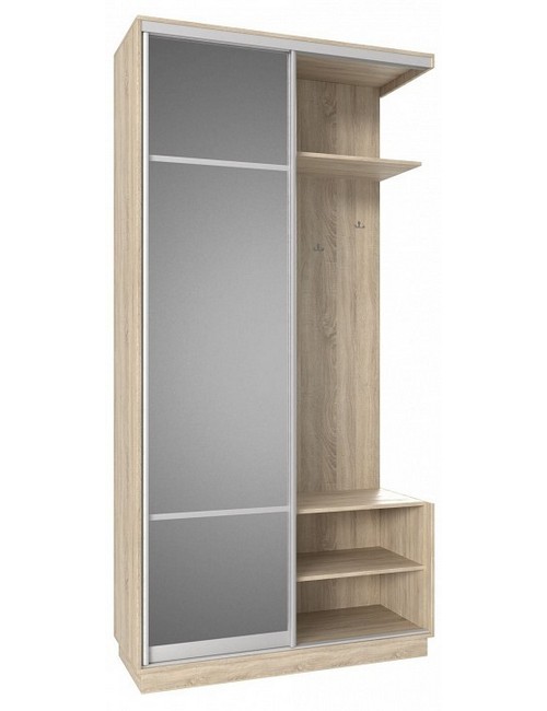 Ширина, см: 120. Высота, см: 240. Выступ, см: 45. Размер упаковки, (мм): 2330x50x580, 1210x100x460, 1200x50x50, 2100x40x600. Вес (кг): 116. Компоненты, входящие в комплект: 1 дверца, 1 штанга для вешалок, 3 крючка, 4 полки. Стиль: модерн. Страна-производитель: Россия. Объем (м3): 0.177. Основной цвет: разноцветная. Материал фасада: алюминий, зеркало. Материал корпуса: ЛДСП Е1. Тип поверхности корпуса: матовый. Дополнительное описание: Прихожая-купе экономит место в комнате и при этом очень вместительная. Благодаря вертикальной сборке, можно собирать даже в узкой прихожей. Для изготовления фасадов применяется ЛДСП 10 (мм), что облегчает конструкцию и продлевает срок службы фурнитуры. Зеркала усилены бронеплёнкой, которая защищает от осколков, если зеркало разбилось. На лицевых деталях применяем кромку 2 (мм), что придает изделию изящный внешний вид, продлевает срок службы и делают эксплуатацию безопасной. Горизонты крепятся к бокам эксцентриковыми стяжками, это сохраняет красивый внешний вид. Дополнительные параметры: нагрузка на штангу для вешалок - 22 кг, нишу под обувь не рекомендуется использовать как сидение. Место размещения: Пол. Помещение: Прихожая. Гарантия (месяц): 24. Основное помещение: Прихожая. Цвет корпуса: дуб сонома. Цвет фасада: серый.