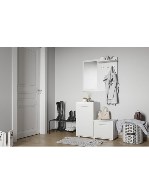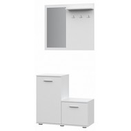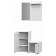Ширина, см: 80. Высота, см: 185. Выступ, см: 34. Размер упаковки, (мм): 815x800x715. Вес (кг): 31. Компоненты, входящие в комплект: 1 вешалка настенная - 800x166x700 (мм), 1 тумбочка - 400x340x378 (мм), 1 тумбочка - 400x340x735 (мм). Стиль: модерн. Страна-производитель: Россия. Объем (м3): 0.047. Цвет кромки: белый. Основной цвет: разноцветная. Материал фасада: ЛДСП Е1. Материал корпуса: зеркало, ЛДСП Е1. Тип поверхности корпуса: зеркальный, матовый. Место размещения: Пол. Помещение: Прихожая. Гарантия (месяц): 24. Основное помещение: Прихожая. Цвет корпуса: белый. Цвет фасада: белый.