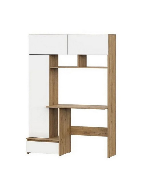 Технические характеристики: Стол компьютерный Некст 1 (дуб золотистый, белый). Функциональный компьютерный стол с продуманной системой хранения, создающий организованное и эргономичное рабочее место. Светлое цветовое решение визуально увеличивает пространство и способствует концентрации. Столешница с оптимальной глубиной для размещения монитора, клавиатуры и необходимых предметов. Верхняя секция закрывается откидной дверцей, которая поднимается вверх. Внутри расположена вертикальная перегородка, создающая два удобных отсека. Выдвижной ящик предназначен для хранения личных вещей, важных бумаг, папок или гаджетов. Открытые полки для мелочей или рабочих материалов. Стол компьютерный Некст 1 - это умное решение для продуктивной работы, где каждая деталь направлена на поддержание порядка, экономию пространства и создание комфортной атмосферы.