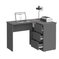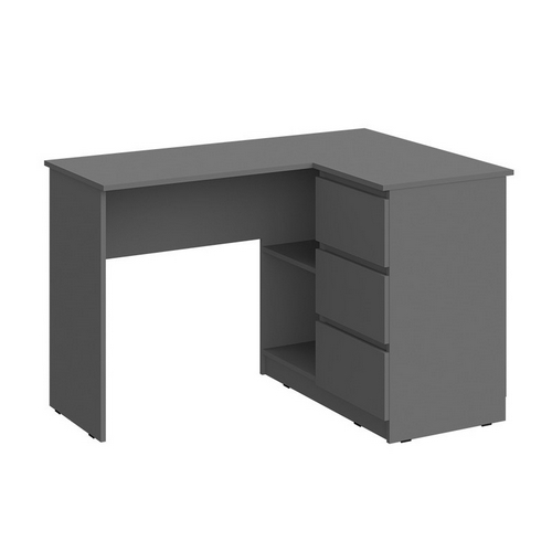 Особенности: Стол письменный угловой Челси (графит) - функциональный элемент и важная часть дизайна интерьера. Стол сочетает в себе элегантность и практичность. Направляющие ящиков - шариковые. Максимальная нагрузка на столешницу - 20 кг. Максимальная нагрузка на ящик - 7 кг.