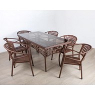 Материал изделия: каркас - металл с порошковым покрытием, плетение - искусственный ротанг, столешница - закаленное стекло.