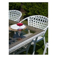 Материал изделия: каркас - металл с порошковым покрытием, плетение - искусственный ротанг, столешница - закаленное стекло.