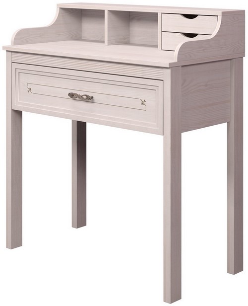 Технические характеристики: Стол туалетный из серии Афродита. Стиль Прованс. Элегантные ножки, металлические ручки. Столик с большим выдвижным ящиком и надстройкой с рельефными боковинами, в которой находятся открытые секции и два небольших выдвижных ящика.