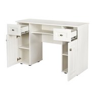 Технические характеристики: Рамочные фасады с раскладкой из профиля МДФ. Выдвижные ящики на шариковых направляющих. Регулируемые опоры. Количество ящиков можно увеличить, если установить Sherlock 54 "Ящики по бокам столешницы". За рамочными фасадами просторная ниша с полкой, регулируемой по высоте. Полка под столешницей. Стол соответствует по высоте нормам ГОСТ и может использоваться как письменный. Также можно докупить зеркало: Sherlock 56 Трюмо или Sherlock 55 Трюмо с ящиками.