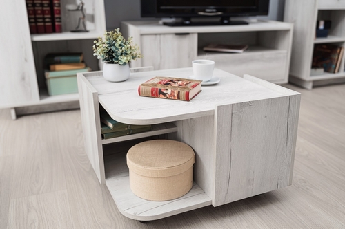 Особенности: Компактный и функциональный журнальный столик Флекс 16. Оригинальная конструкция столика придаст интерьеру яркий акцент. Столик имеет бортики, что предотвращает падение предметов. Полочки внутри столика позволяют хранить книги и другие мелочи для дома. Колесные опоры добавляют столу мобильности в передвижении. Выдерживает нагрузку до 20 кг. Можно компоновать с другими модулями из серии мебели Флекс.