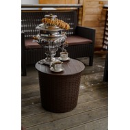 Технические характеристики: Столик под ротанг СадКо (темно-коричневый). Компактный и стильный кофейный столик с эффектным плетением под ротанг, созданный для удобного размещения напитков, книг и декора в зоне отдыха. Модель в универсальном цвете идеально дополняет садовые кресла и диваны, а низкая конструкция позволяет использовать его как журнальный или кофейный столик на террасе, в саду или у бассейна. Искусственное плетение под ротанг создает природную эстетику и уютную атмосферу. Специальное покрытие защищает столик от выцветания под солнечными лучами, сохраняя насыщенность цвета на долгие годы. Конструкция разработана для простой и интуитивно понятной сборки без использования специальных инструментов. Столик под ротанг СадКо станет стильным и функциональным дополнением вашего сада или террасы, создавая уютную атмосферу для отдыха и общения.