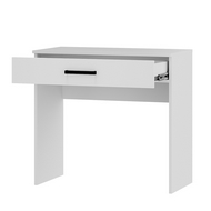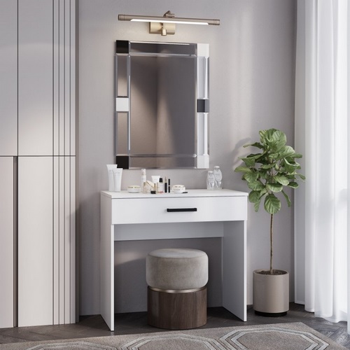 Дополнительно: Туалетный стол Фьюжн СТ-02 имеет компатные размеры, посему позволит Вам организовать женский уголок даже в небольшой спальне. В выдвижном ящике поместится косметика, аксессуары и другие личные вещи. Шариковые направляющие полного, плавного и бесшумного выдвижения на выдвижном ящике. Стильная и удобная ручка черного цвета.