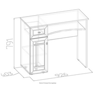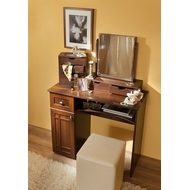 Технические характеристики: Туалетный стол оснащен тумбой, выдвижным ящиком и нишей под столешницей. Внутри тумбы - одна полка. Выдвижной ящик на шариковых направляющих. Максимальная нагрузка на выдивжной ящик до 5 кг. Туалетный стол может использоваться в качестве письменного и компьютерного стола. Зеркало, маленькие выдвижные ящики и банкетка не входят в стоимость и приобретаются дополнительно.