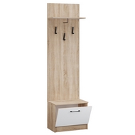 Особенности Тумбы для обуви напольной Денвер: Тумба с вешалкой, полкой-антресолью, сиденьем и отсеком для хранения обуви. Крючки для одежды с покрытием soft-touch. Черная металлическая ручка. Полка-антресоль, как дополнительная опция.
