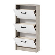 Особенности: Тумба для обуви Вега помогает поддерживать порядок в прихожей и хранить обувь в аккуратном состоянии. Обувница закрытая, имеет 3 отделения для обуви за откидными дверьми, с разделителем в каждом. Высокая, узкая обувница не занимает много места, позволяет разместить до 12 пар обуви. Максимальный размер обуви - 45 (RU). Ручки пластиковые.
