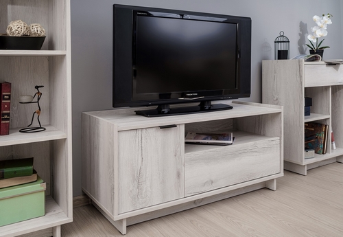 Особенности: Напольная тумба для телевизора Флекс 3 - это стильное и функциональное решение для вашего интерьера. Тумба имеет верхнюю открытую нишу, нижний выдвижной ящик и боковое отделение с распашной дверцей с тонкой торцевой ручкой. Выдвижной ящик оснащен шариковыми направляющими полного выдвижения для плавного и бесшумного открывания. Дверь ящика открывается за верхнюю выступающую часть фасада. Небольшая высота и ширина в 1,1м позволяет удобно разместить на тумбе телевизор диагональю до 49 дюймов. Бортики по краям столешницы защитят предметы от падения. Притопленный цоколь придает мебели легкости и воздушности. Можно компоновать с другими модулями из серии мебели Флекс.