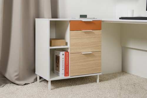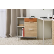 Особенности: Тумба Марвэл 16.160 состоит из трех выдвижных ящиков и открытых полок. Тумба изготовлена из ЛДСП, который отличается высокой износостойкостью и устойчивостью к механическим повреждениям. Фасады оснащены металлическими ручками. Ящики на шариковых направляющих. Опоры металлические с регулировкой. Можно компоновать с другими модулями из серии мебели Марвел. Реальный цвет товара может отличаться от цвета товара на фотографии. Поставляется в разобранном виде.
