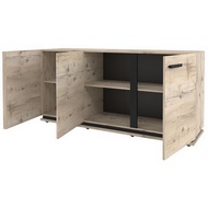 Технические характеристики: Тумба состоит из трех отделений, за распашными дверцами которых скрываются полки. Полки можно регулировать по высоте. Возможна левосторонняя и правосторонняя сборка. Регулируемые опоры, которые помогут компенсировать неровности пола. Ручки из массива дерева. Ударопрочная кромка ПВХ 2 мм. Тумба подходит не только для хранения вещей, но и для размещения телевизора.