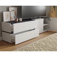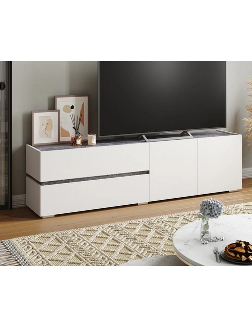 Технические характеристики: Тумба под ТВ Аркон (белый, бетон темный) - в элегантном дизайне, идеально впишется в любые помещения и создат в них уют. Тумба имеет отсек за распашными створками и два выдвижных ящика. Ящики на шариковых направляющих. Опора комода регулируемая - 2 см.