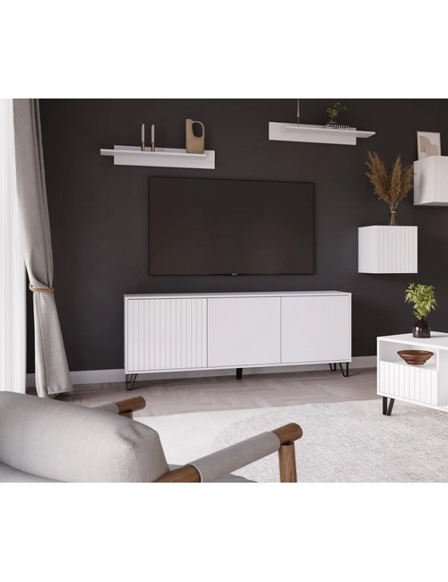 Технические характеристики: Тумба под ТВ МС Ливерпуль (белый, белый глянец) - в элегантном дизайне, идеально впишется в любые помещения и создат в них уют. Тумба имеет 3 отсека за распашными створками. Опоры черные, входят в комплект.